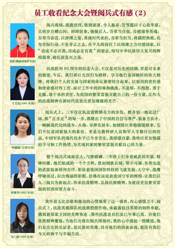 2025年9月,紀(jì)念中國人民抗日戰(zhàn)爭暨世界反法西斯戰(zhàn)爭勝利80周年:《員工收看紀(jì)念大會暨閱兵式有感(2)》