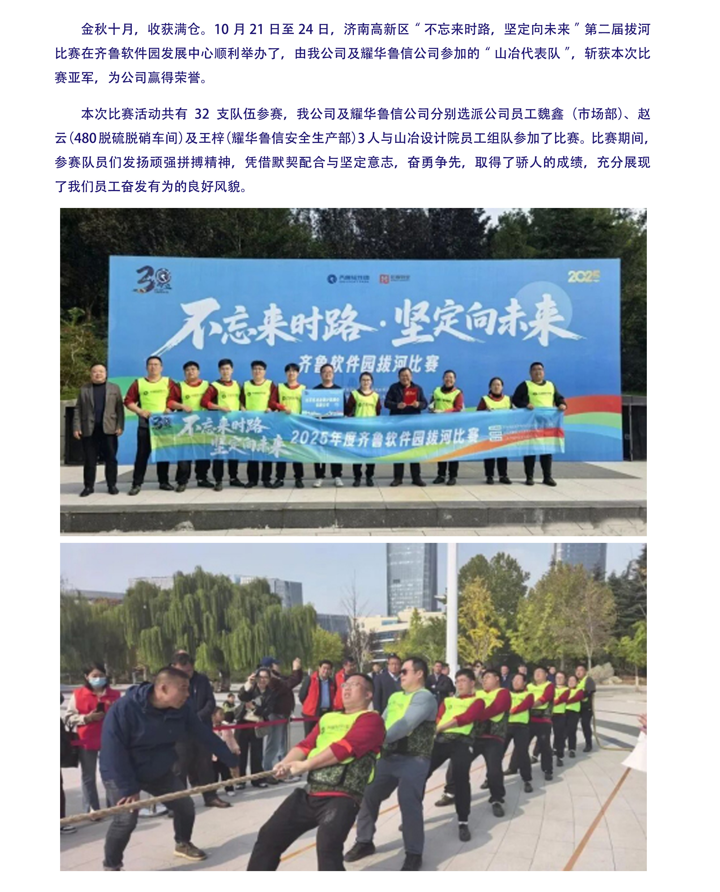 2025年10月,我公司參加的“山冶隊”勇奪濟南高新區(qū)拔河比賽亞軍